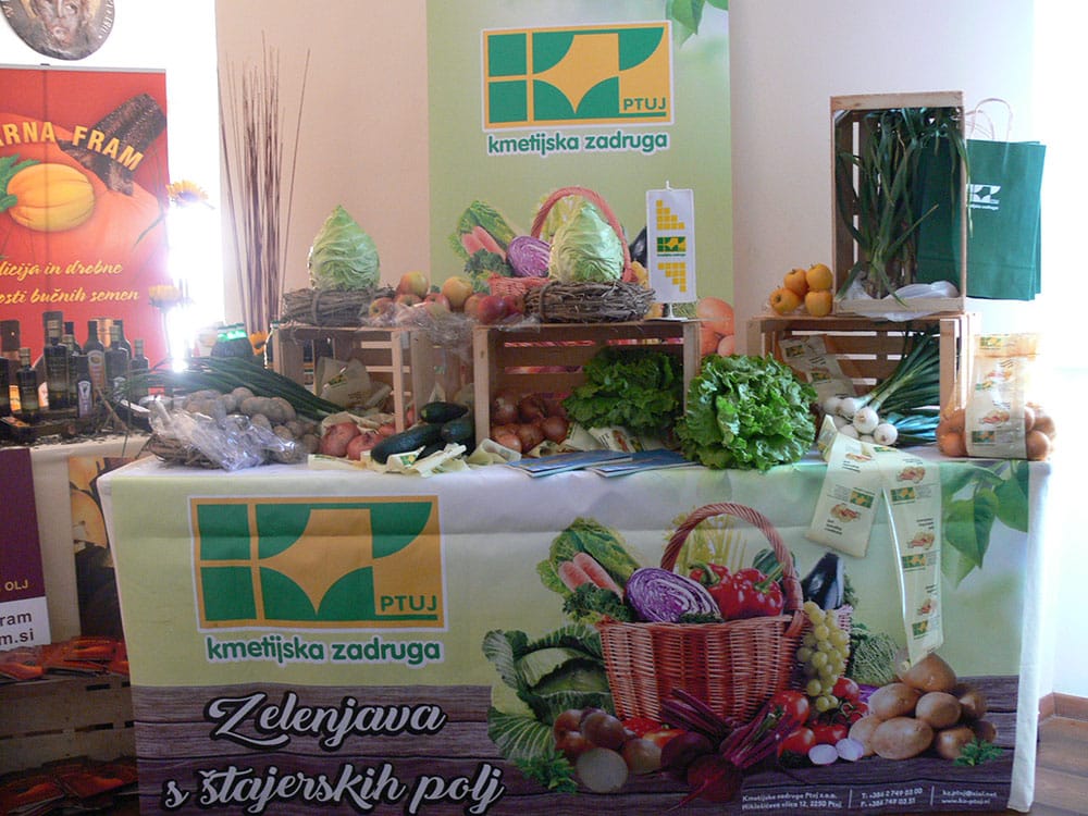Kmetijska zadruga Ptuj je letos številnim obiskovalcem razstave predstavila aktualno ponudbo sveže domače zelenjave, zlasti mladi krompir, mlado čebulo in česen, sveže kumare, solato kristalko ter mlado zelje. Vsa našteta zelenjava je kupcem na voljo v živilskih prodajalnah KZ Ptuj ter v prodajalni Zadružnik na Ptuju.