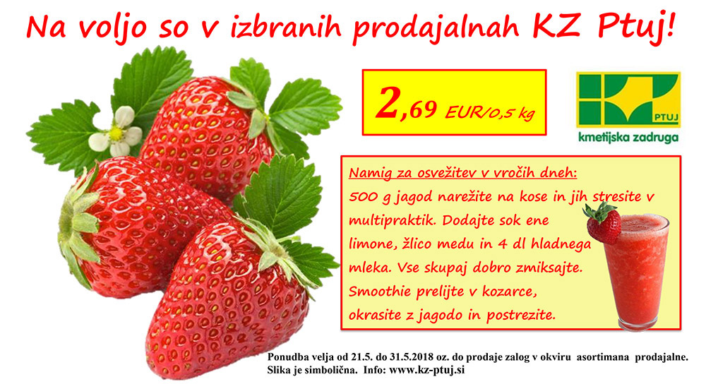 Domače jagode v prodajalnah KZ Ptuj