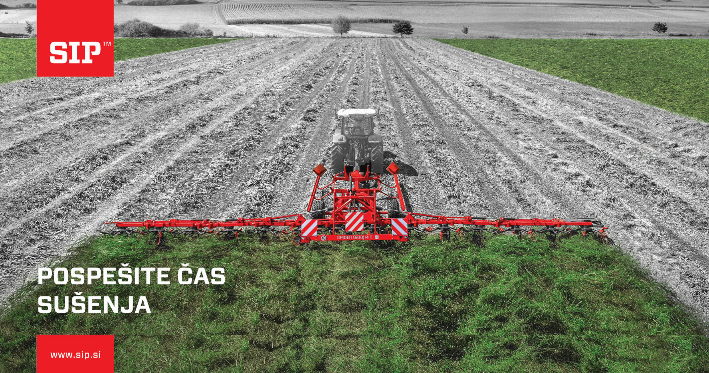 Kakovost krme je odvisna od dveh ključnih dejavnikov: natančnosti raztrosa ter hitrosti sušenja. Pomemben člen celotnega procesa so tudi učinkoviti obračalniki. Z delovnimi širinami do 15 metrov tako SIP ponuja največjo ponudbo obračalnikov na trgu. – @SIPSlovenia.